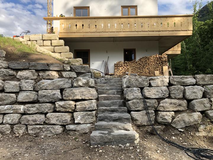Stützmauerbau mit 2 Treppen in Staudach