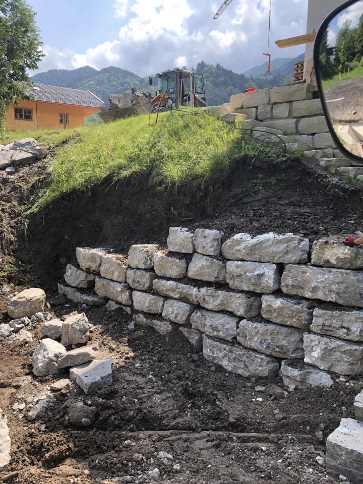 Beginn der Erdarbeiten für die Errichtung einer großen Stützmauer