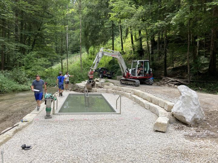 Das fertige Wassertretbecken in Marquartstein Ortsteil Vogllug