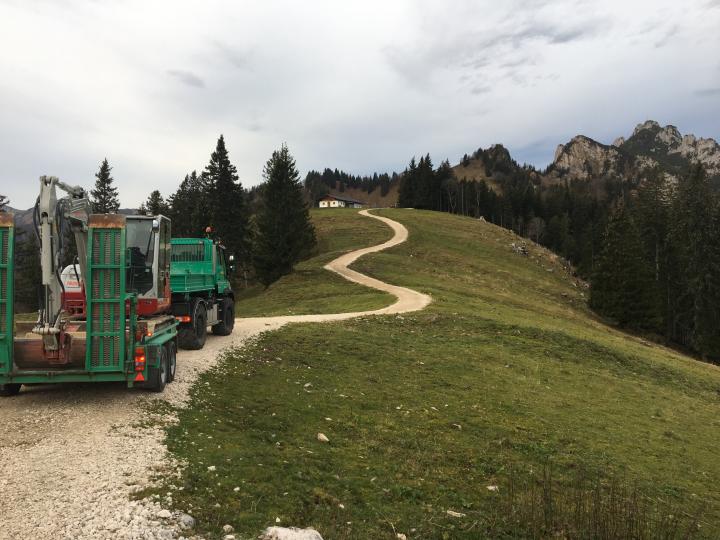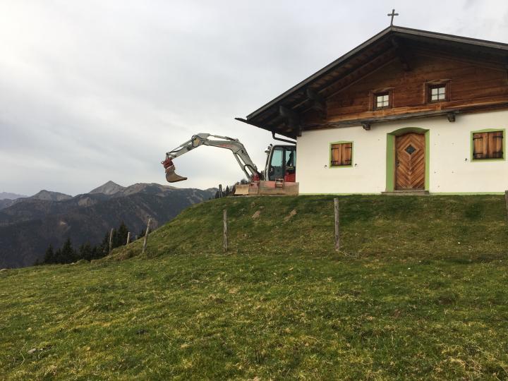 Es wird angerichtet. Wir führen die Erdarbeiten für eine neue Quellfassung im Almgebiet Schleching/ Donaueralm durch