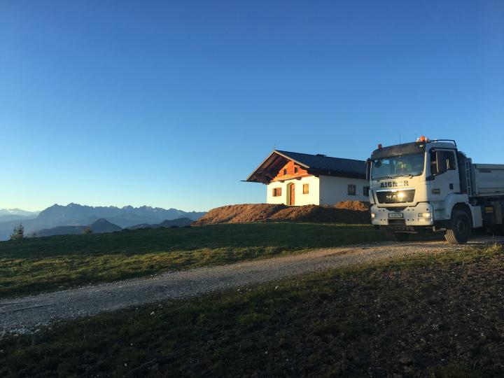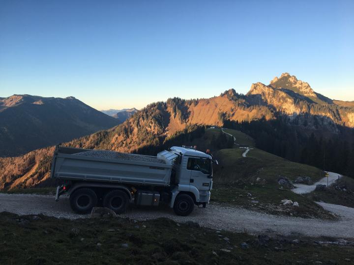 Erneuter Kiestransport zur Hochalm bei genialem Wetter