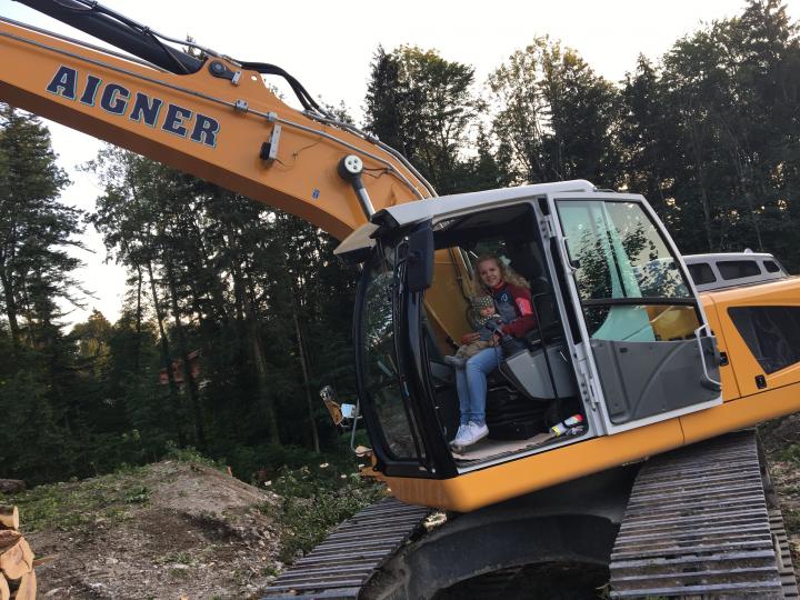 Unser kleiner Enkelsohn versucht sich auch schon als Baggerfahrer