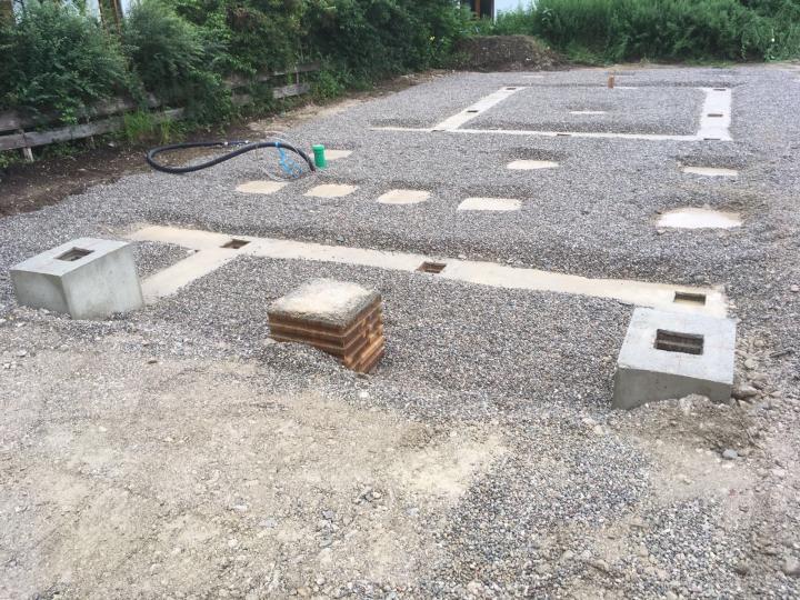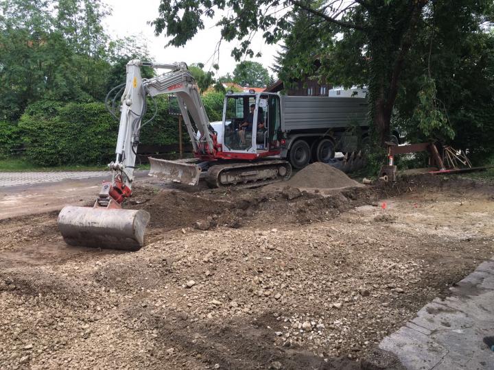 Fundamente zur Abdichtung freigelegt, sowie den Frostkoffer für die neuen Parkplätze erstellt
