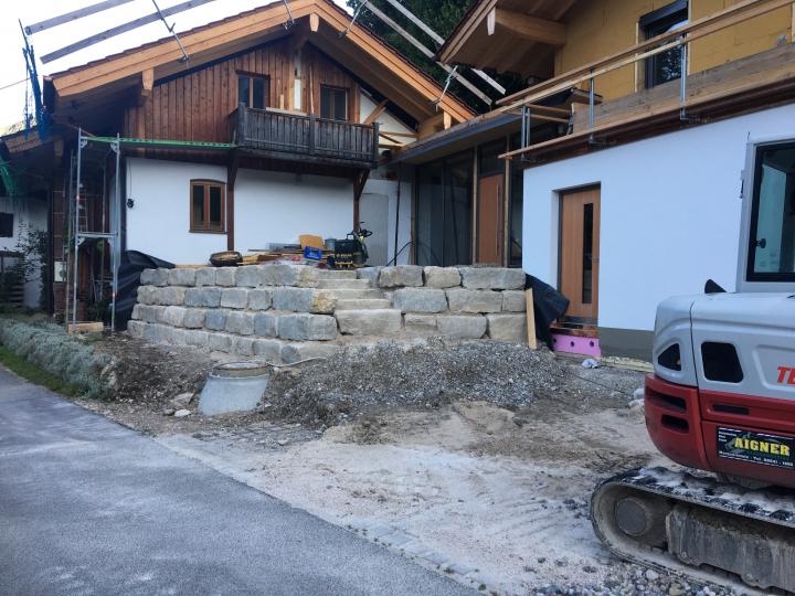 Erstellung einer Stützmauer mit Treppenaufgang