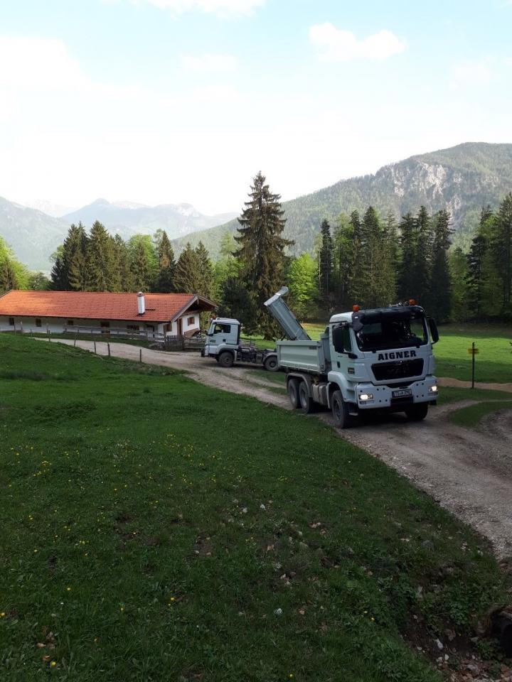 Kiestransport in eines der Schlechinger Almgebiete