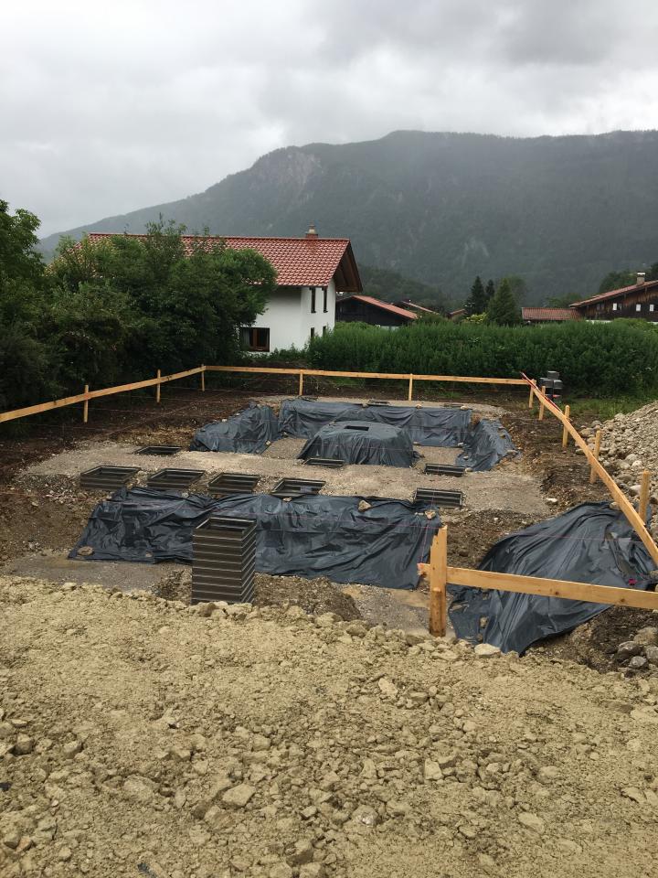 Erdarbeiten und Fundamentaushub für einen Neubau in Schleching/ Mühlau