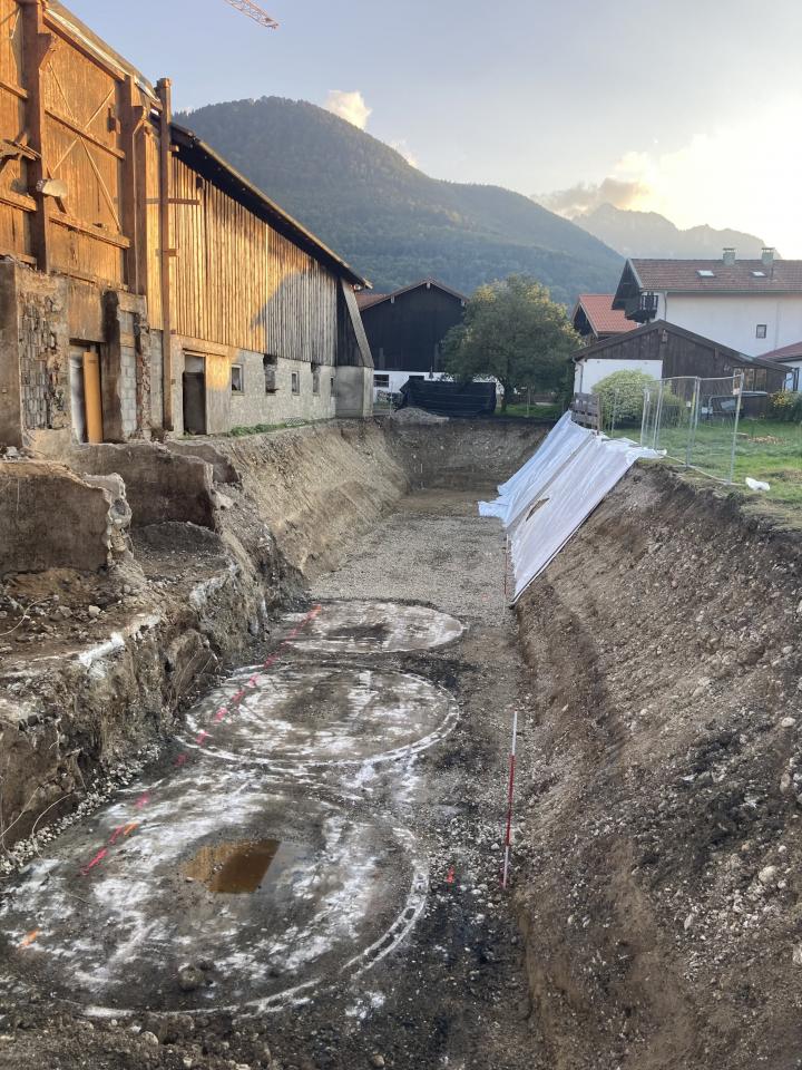 Beginn der Erdarbeiten für ein neues Stallgebäude in Übersee