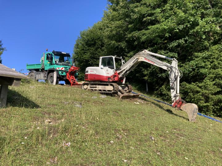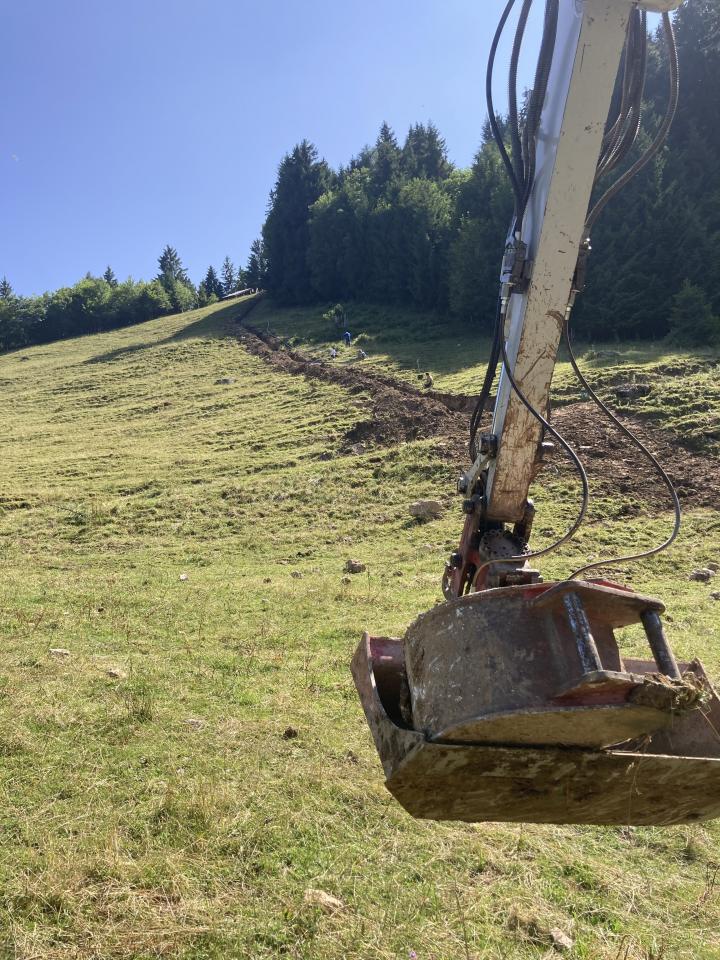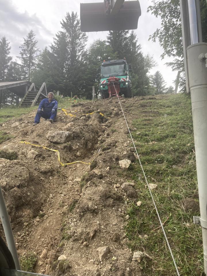 Erstellung eines Leitungsgraben für die Stromkabelverlegung von der Hochplattenbahn Bergstation runter bis zu Rachlalm