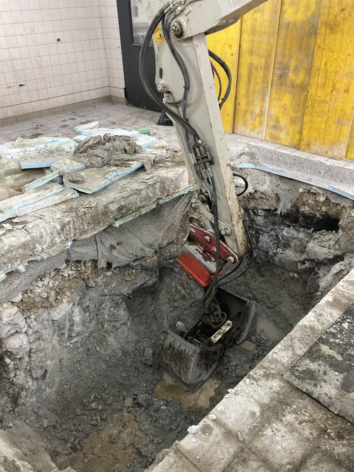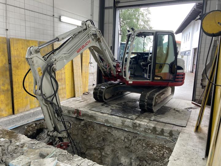 Abbruch und Aushubarbeiten für eine neue Hebebühne in einer Kfz Werkstatt in Grassau
