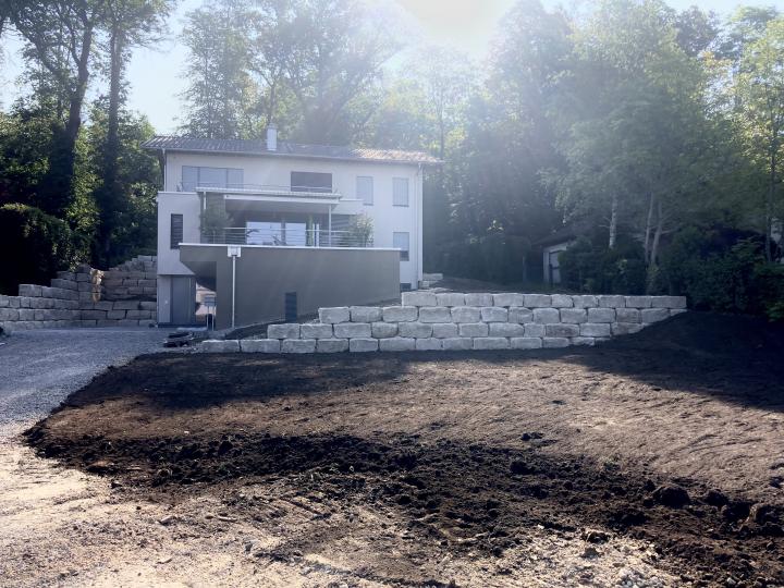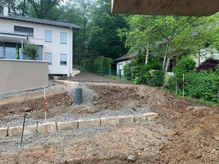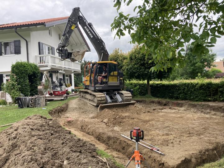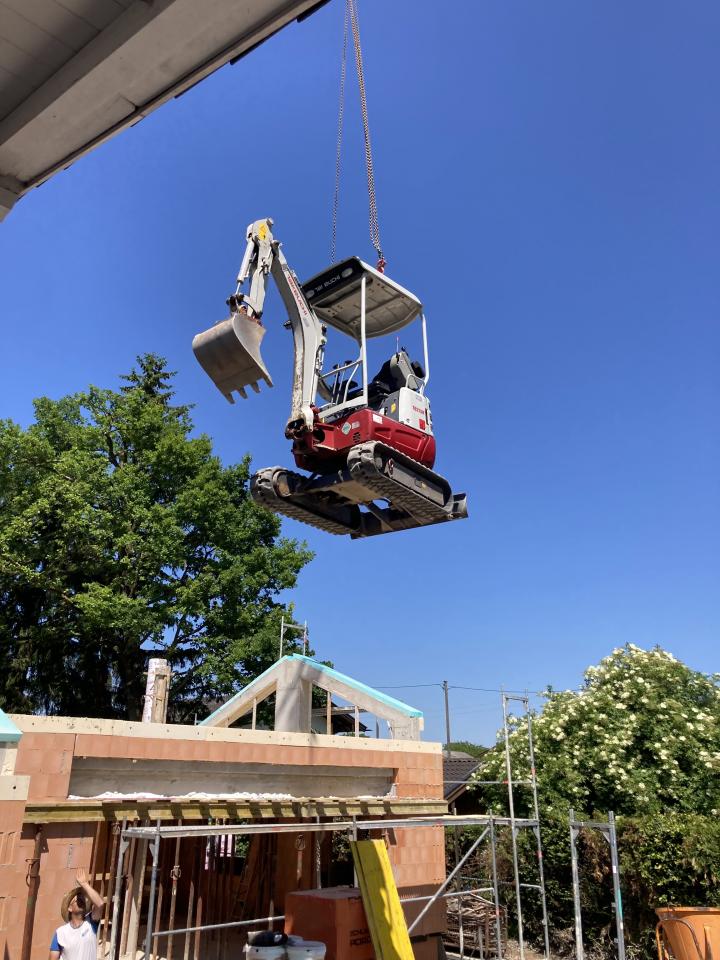 Mit dem Minibagger erfolgt das Kiesverladen auf die Dumper