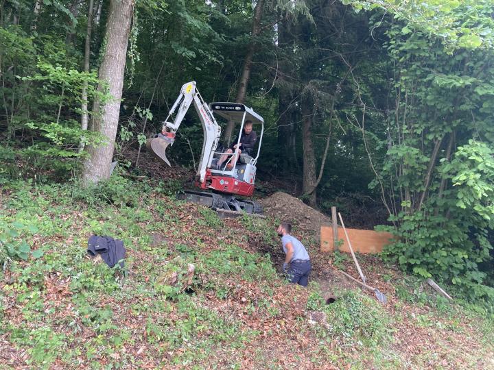 Baggertransport zur Wegebaustelle Bayerische Staatsforsten