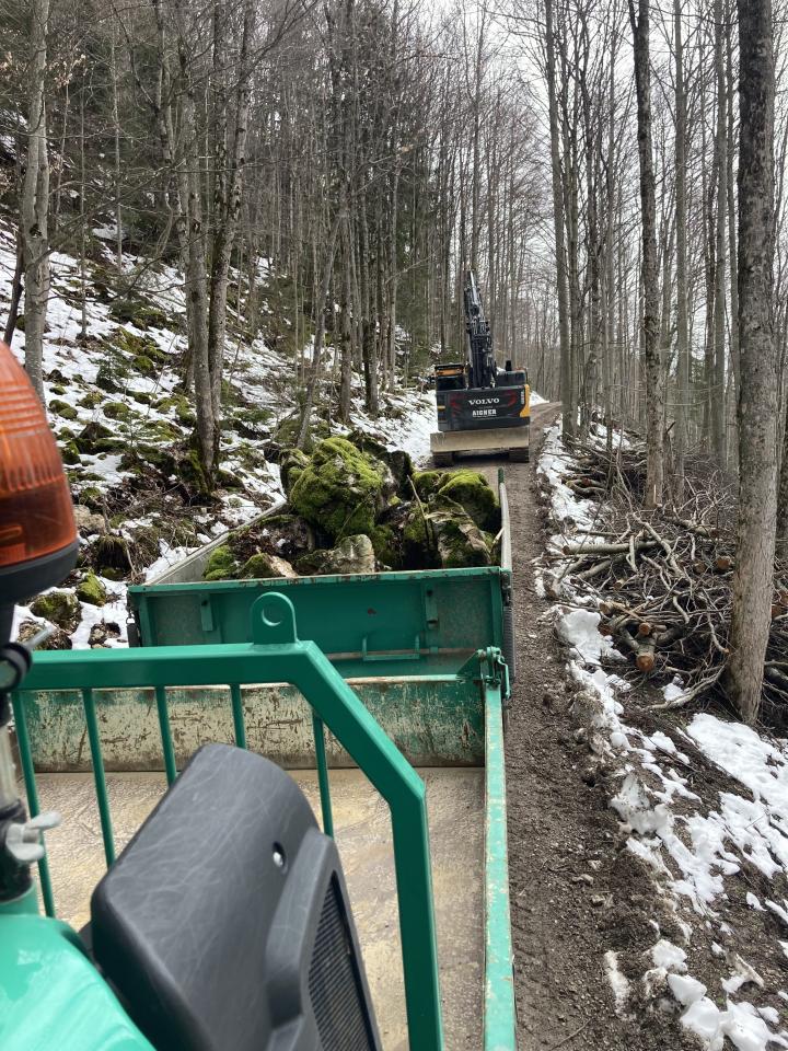 Transport von 2 Raddumper zur Instandsetzung eines sehr schmalen Weges im Bereich Sachrang