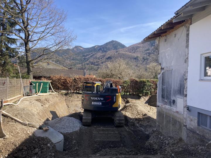 Vorarbeiten für einen Baugrubenaushub in Grassau