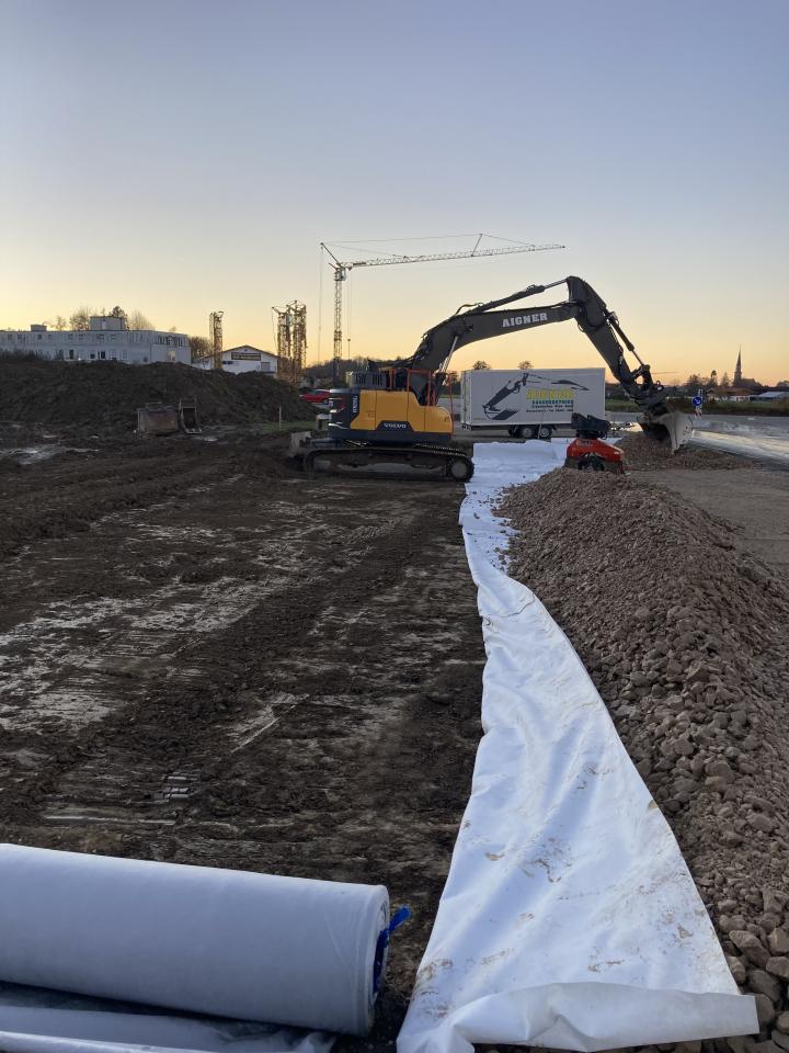 Auskofferung des Unterbaus für eine Gewerbehalle in Übersee