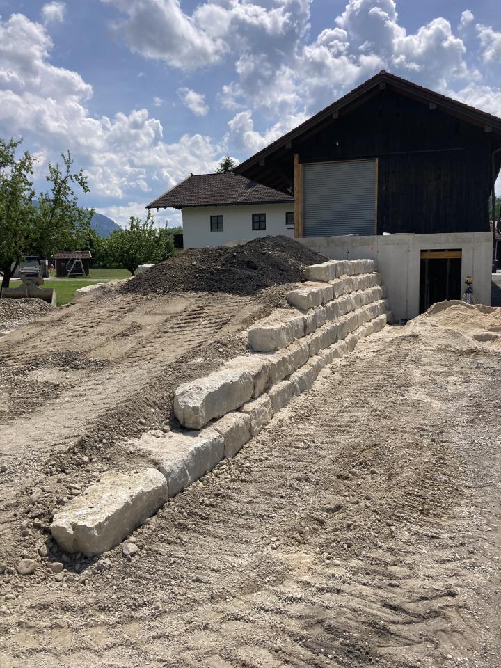 Böschungssicherung und gleichzeitig Grundstücks- Grenzmauer in Staudach