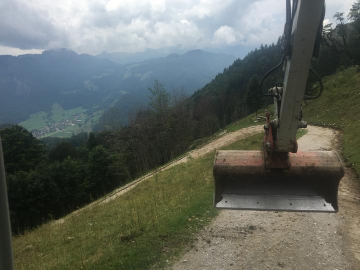 Beseitigung eines kleinen Murenabgangs am Recheberg - Almweg sowie anschließender Wegepflege