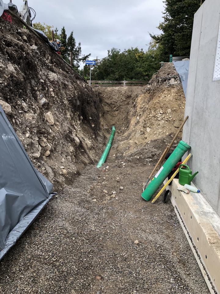Erdarbeiten für einen Kanalanschluß in Staudach