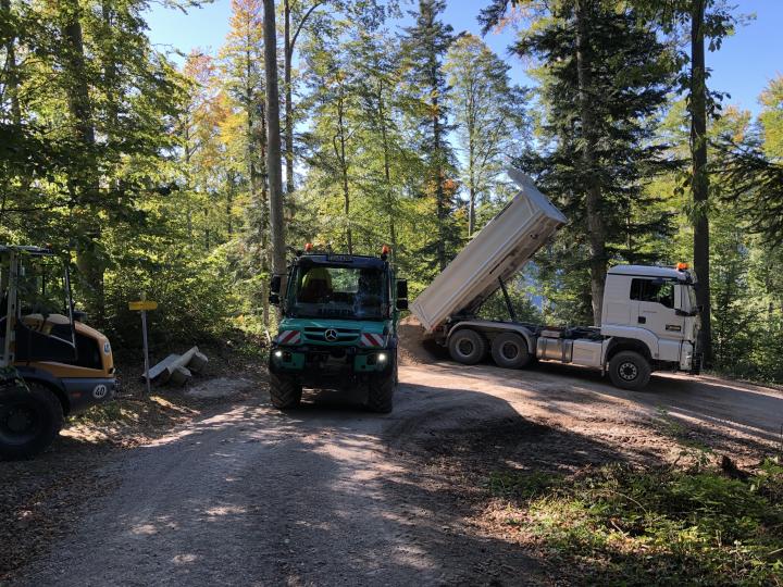 Herstellen und liefern von Staffner Straßenkies zur Sanierung einer privaten Forststraße in Raiten