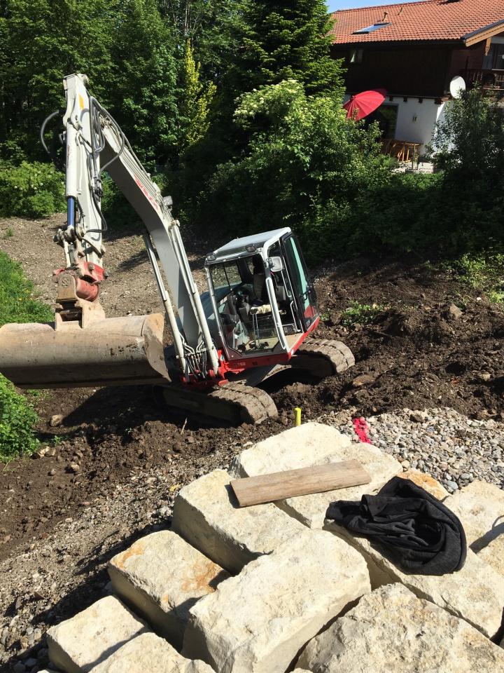 Erstellen einer Stützmauer an einem Bauvorhaben in Prien