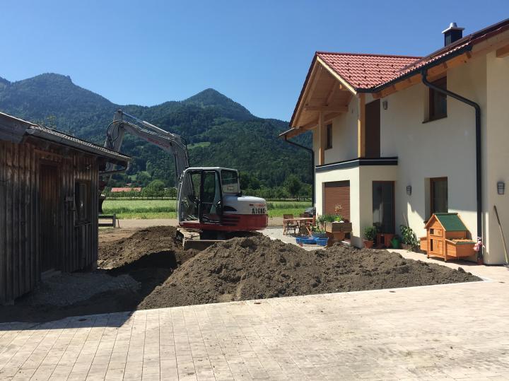 Erdarbeiten für einen Neubau in Übersee inklusive der Verlegung sämtlicher Grundleitungen