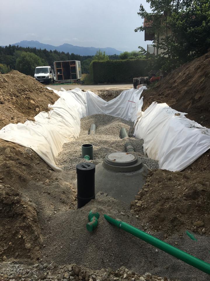 Einbau einer Zysterne mit nachfolgender Rigolenversickerung