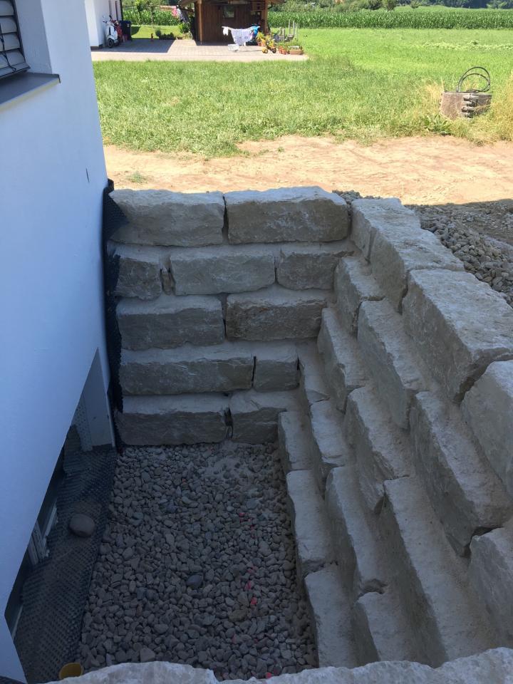Erstellen einer Stützwand mit Treppenaufgang in Staudach-Egerndach