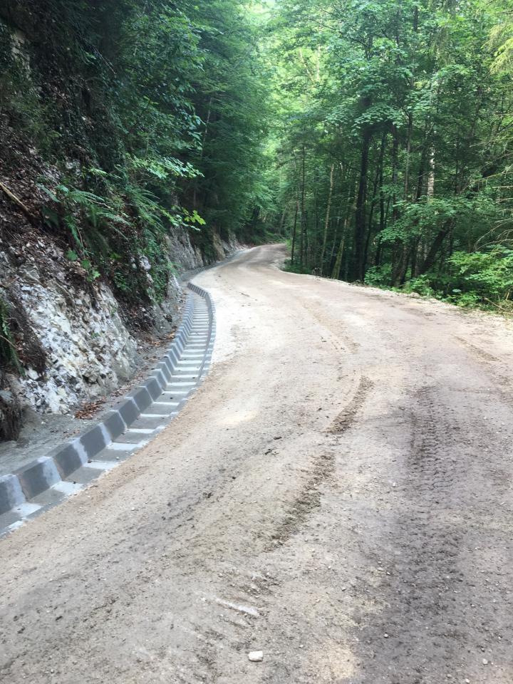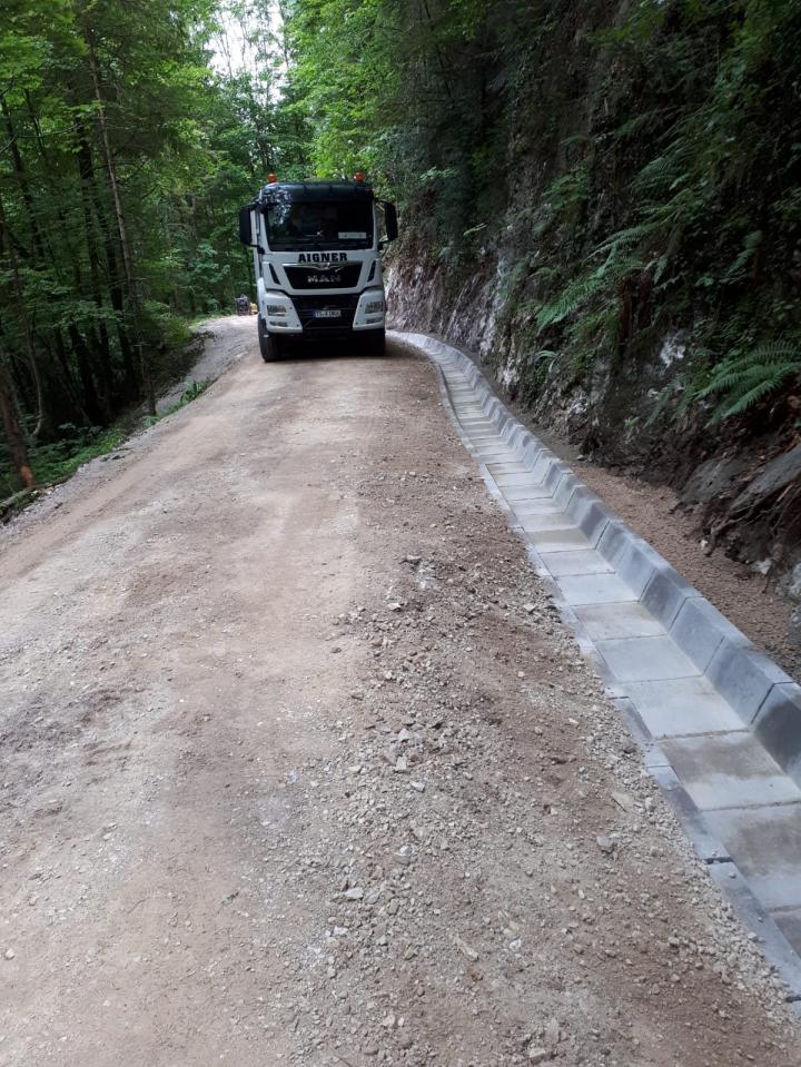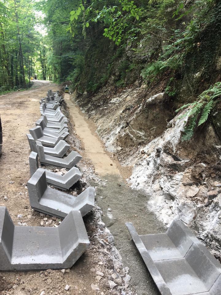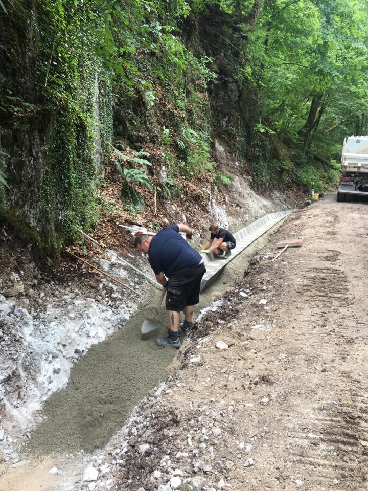 Fertiggestellte Sohlschalenrinne am Kaiserblickweg in Niedernfels, Gemeinde Marquartstein