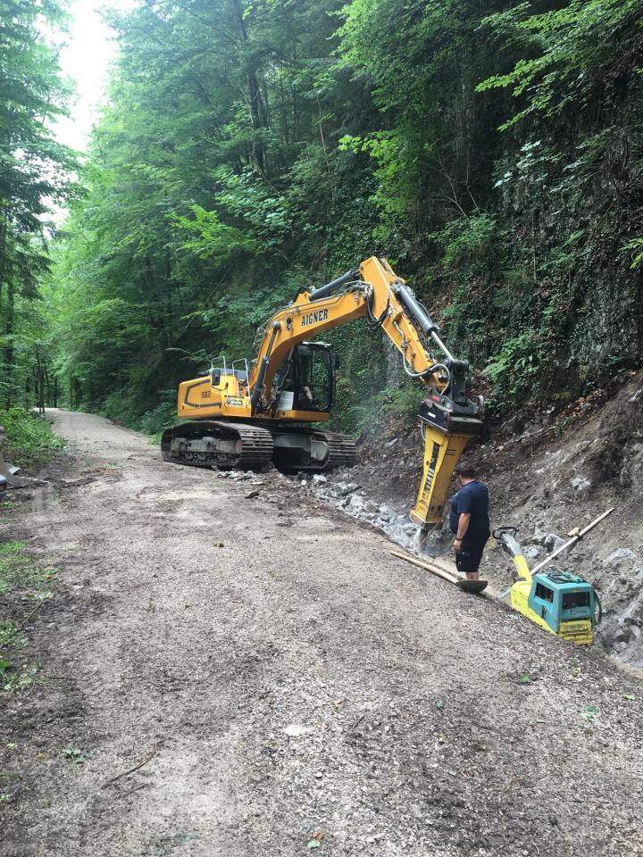 Felsabbrucharbeiten für die Erstellung einer Wasserablaufrinne am Weg zur Spinne im Gemeindegebiet Marquartstein