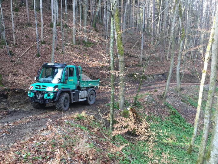 Kiestransport für den Bau eines Rückeweges