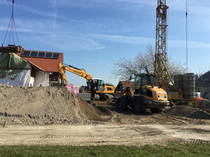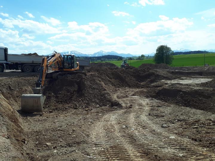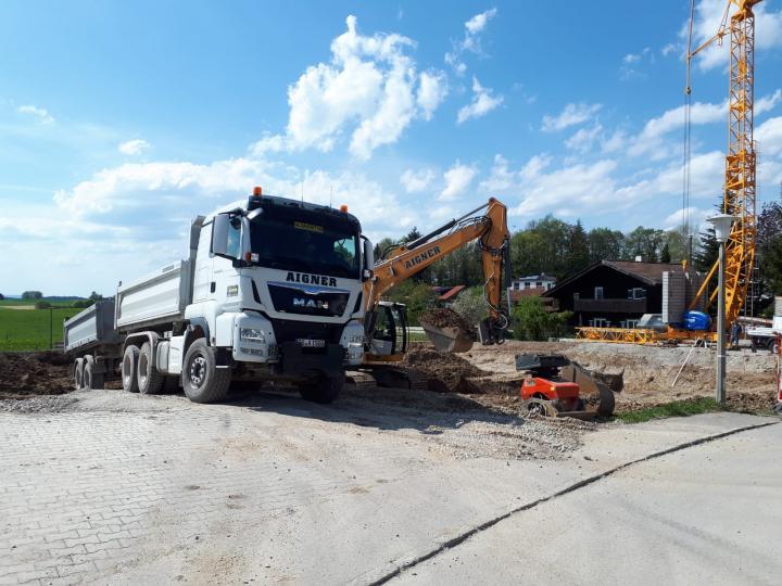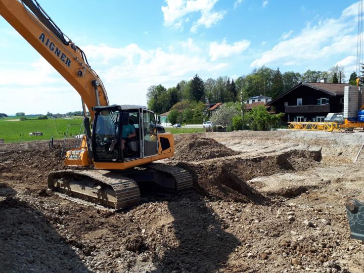 Baugrubenaushub für eine Tiefgarage am Stadtrand von Traunstein