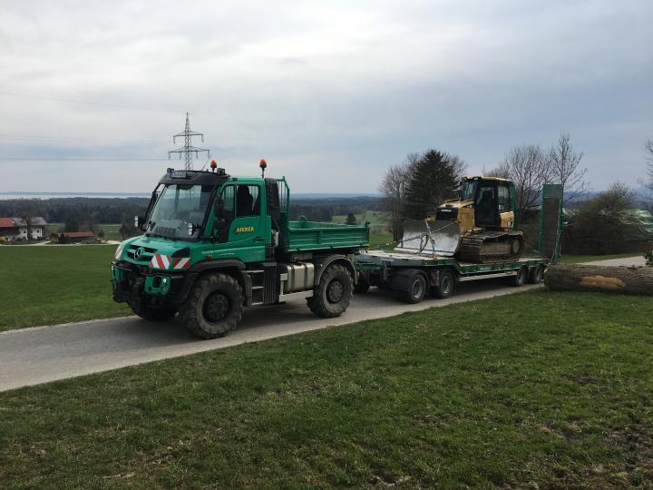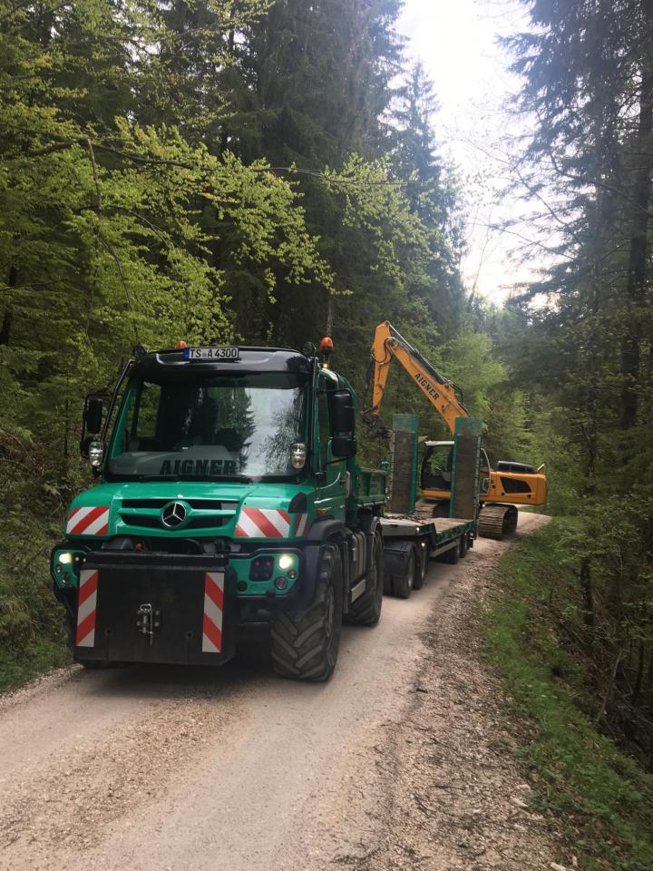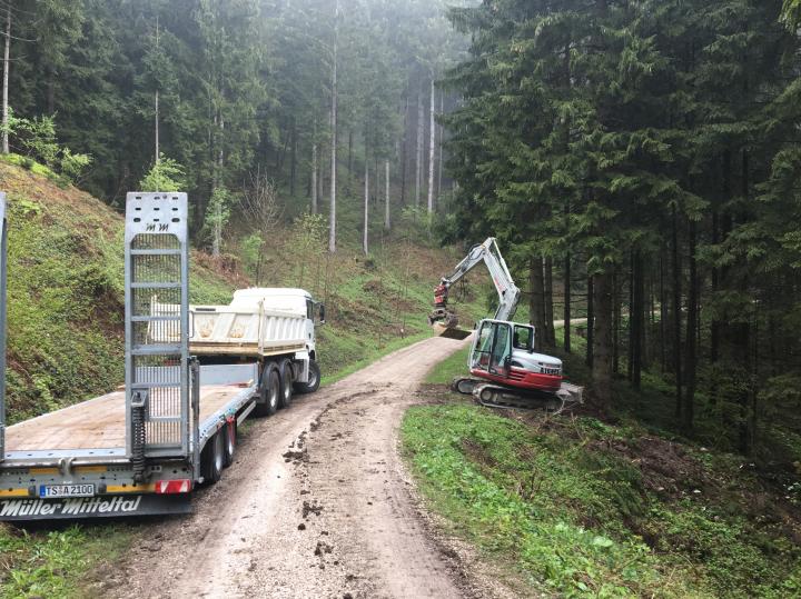 Baggertransport für den Wegebau der Bayrischen Staatsforsten