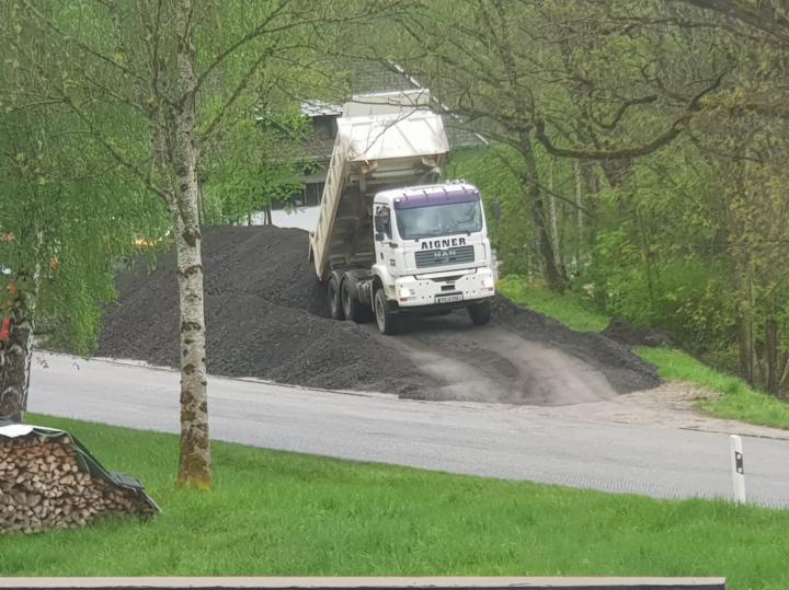Der Kiestransport für die Sanierung des Achendammweges von Marquartstein bis Staudach-Egerndach wurde von uns ausgeführt
