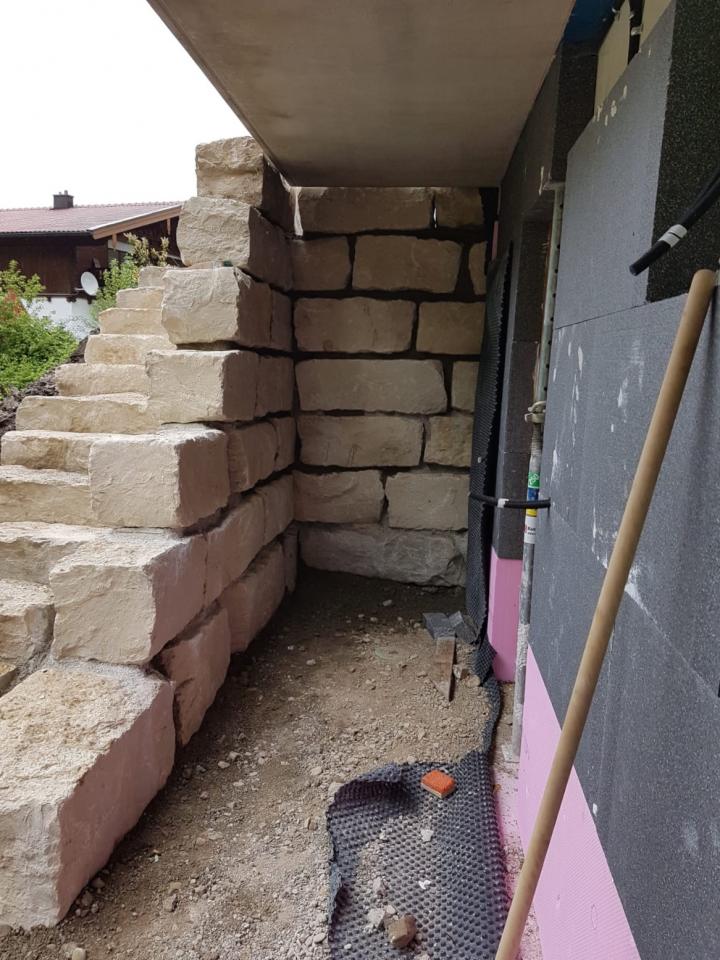 Erstellen einer Stützwand mit Außentreppe