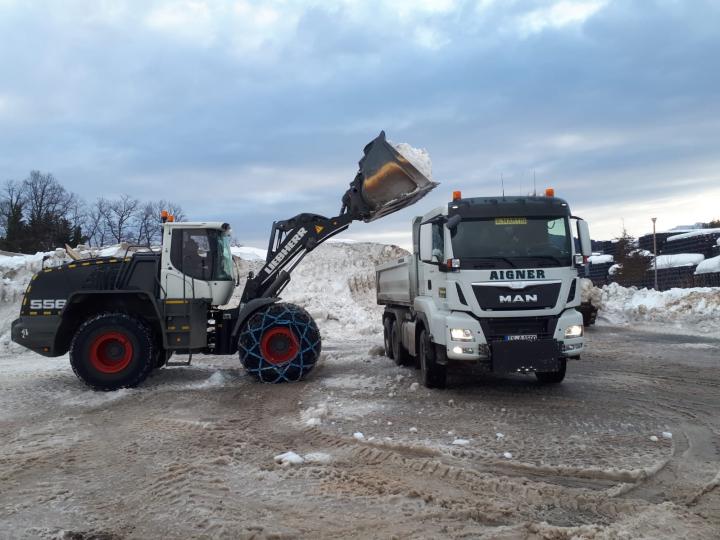 Schneetransport in Adelholzen im Auftrag vom Lohnunternehmen Burghartswieser