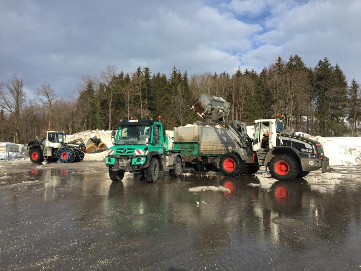 Schneeverladung in Adelholzen mit 2 Radlader vom Lohnunternehmen Burghartswieser in Übersee