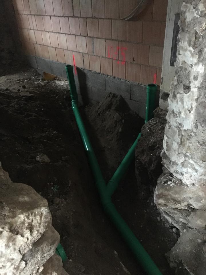 Verlegung von Grundleitungen in einem alten Bauernhof-Anwesen