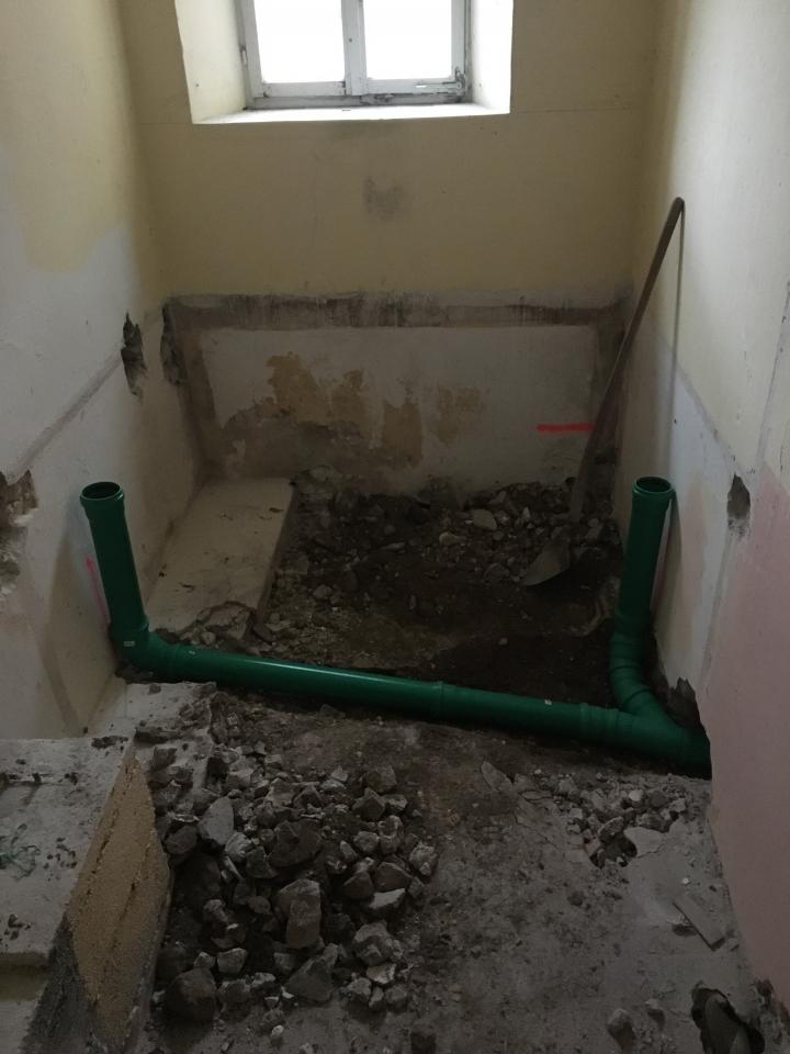Einbau von Grundleitungen in einem alten Bauernhof-Anwesen
