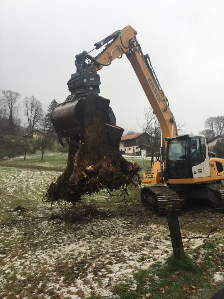 Beseitigung und Abfuhr sowie Entsorgung der riesigen Wurzelstöcke
