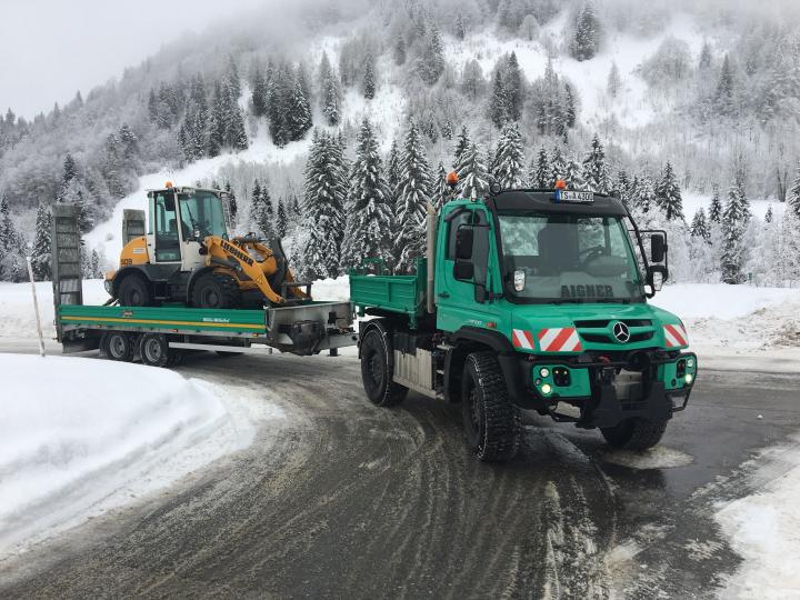 Radladertransport nach Unken, ins Skigebiet Heutal