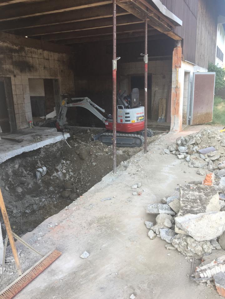 Abbruch der alten Aufstallung in einem Rinderstall in Grassau
