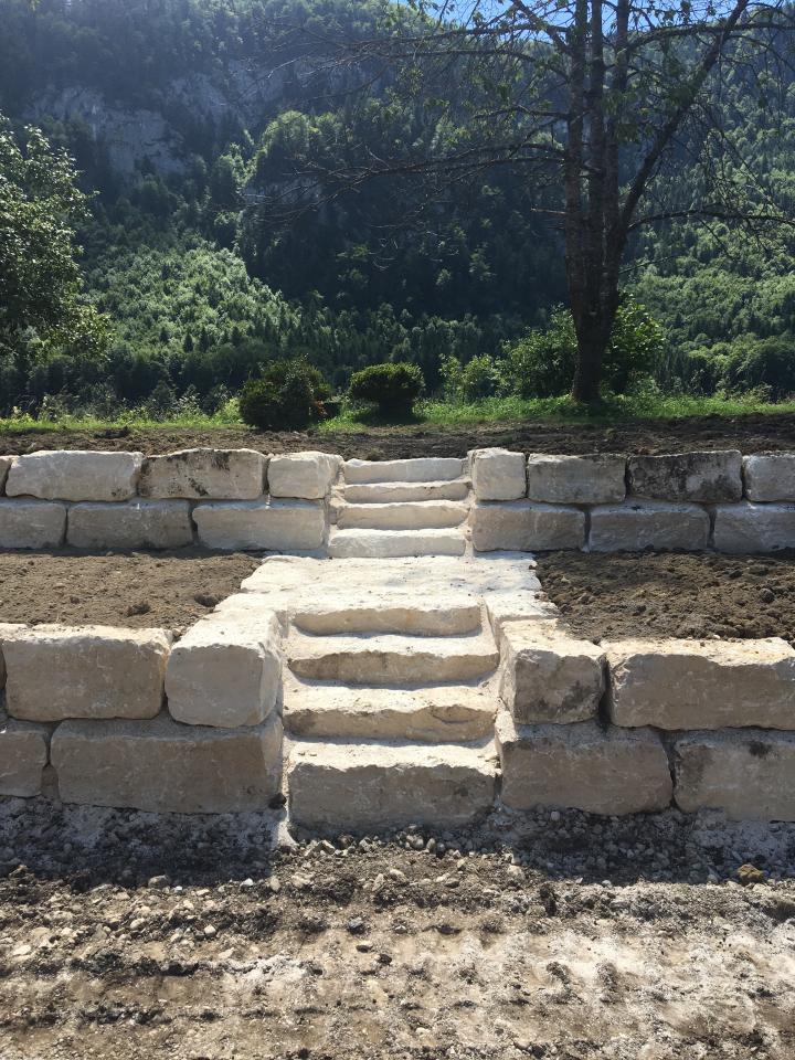 Erstellung von 2 Böschungsmauern mit Quadersteinen sowie die Erstellung zweier Treppenaufgängen
