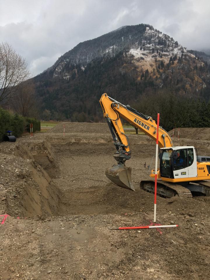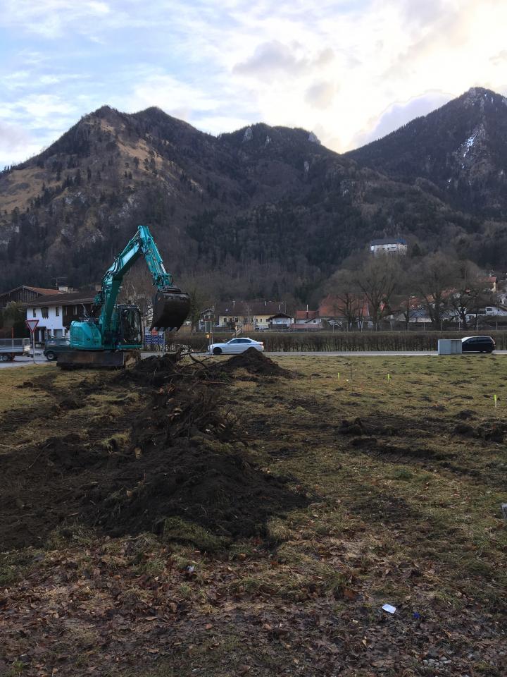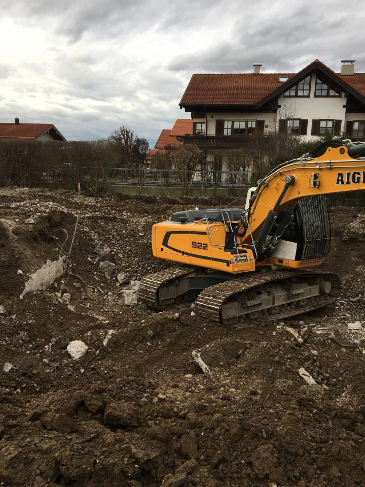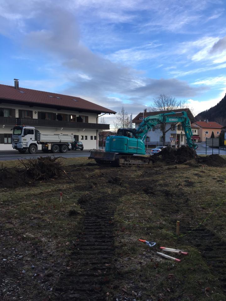Erster Baugrubenaushub in Marquartstein