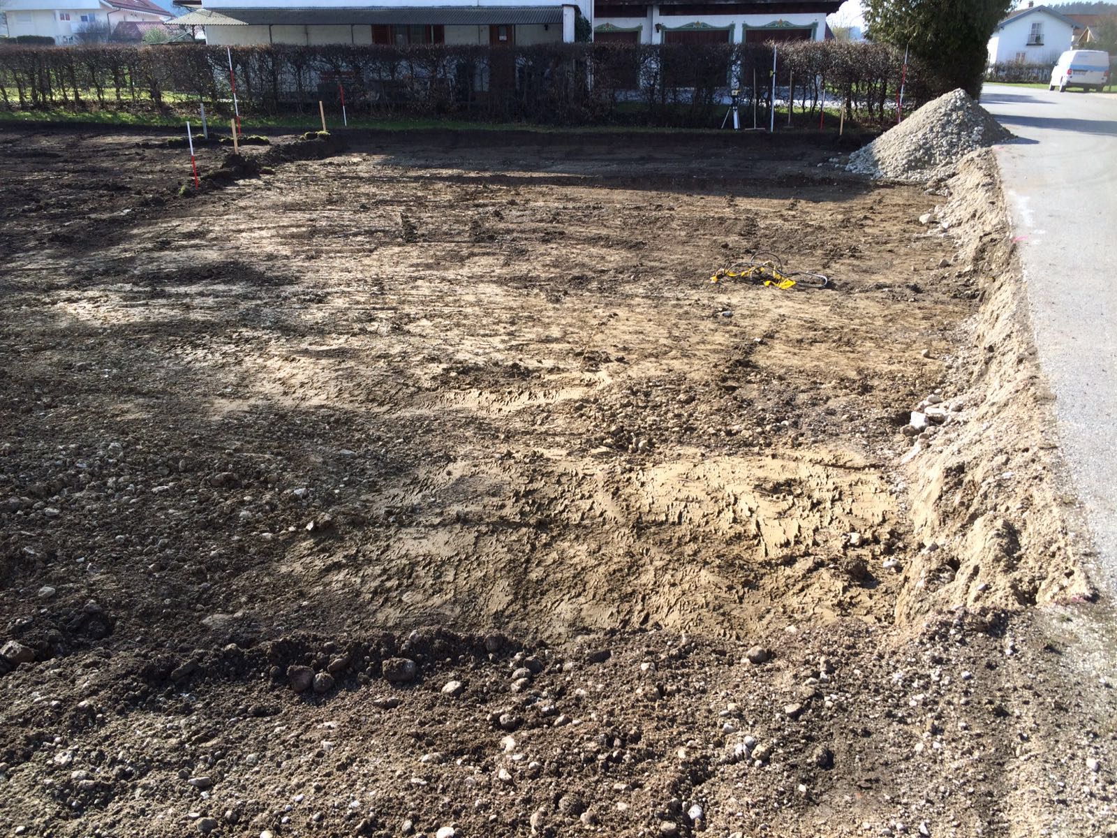 Baugrubenaushub Bernau, erst erfolgt die Erstellung der Zufahrt bzw. der Kranplatz