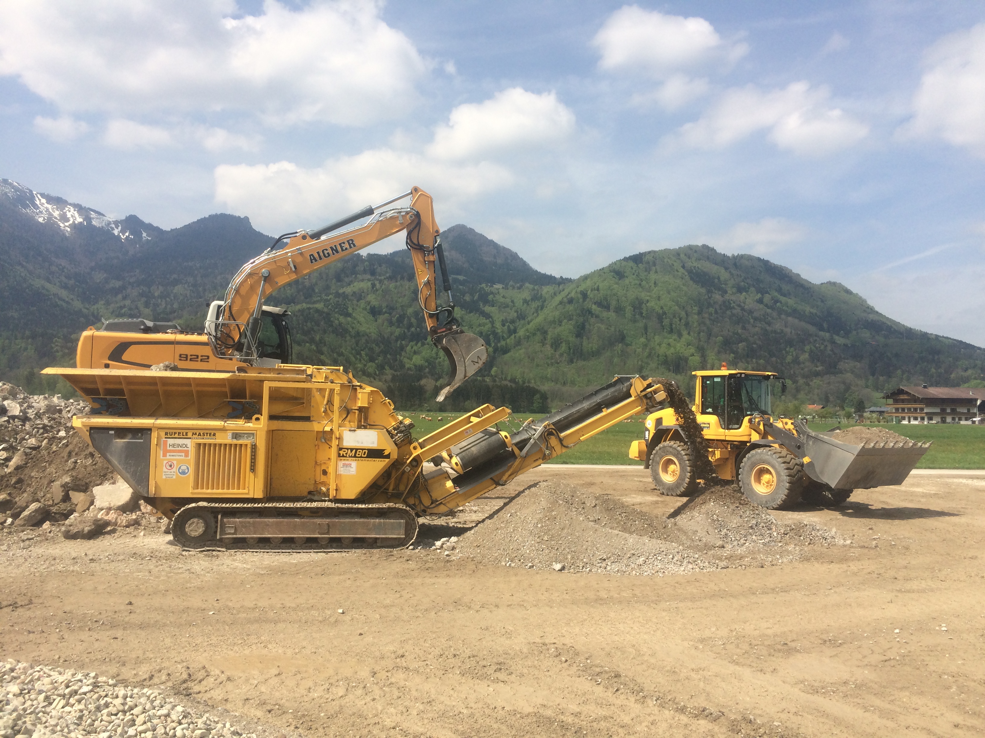 Brechen des Felsmaterials von der Baugrubensprengung in Unterwössen.