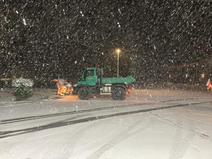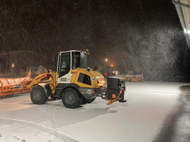 Erster Winterdiensteinsatz am 22.11.24, unser LKW räumt Kreisstraßen im Achental im Auftrag vom Landkreis Traunstein