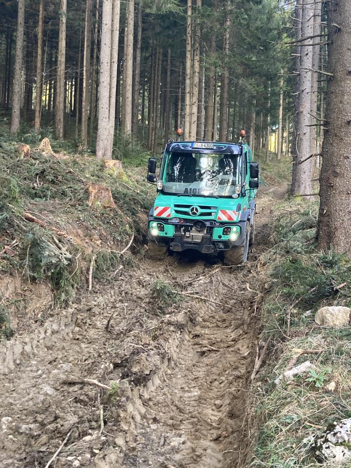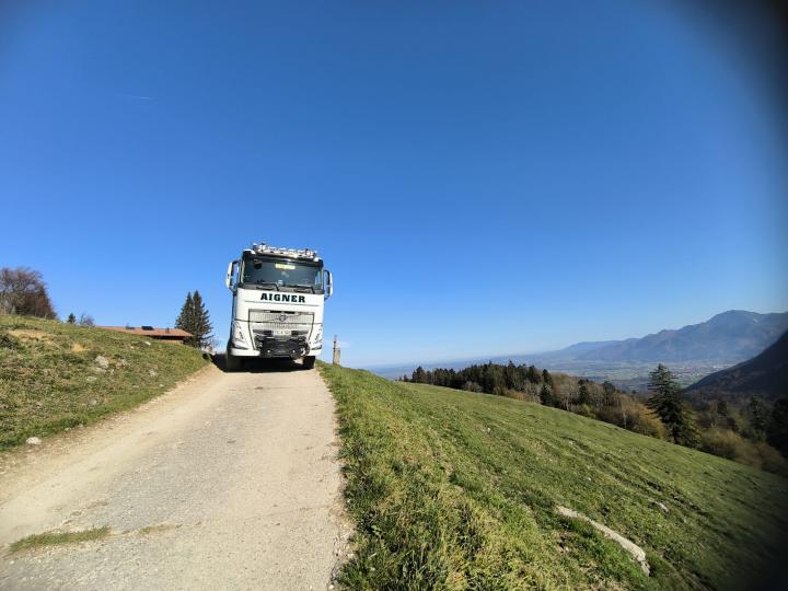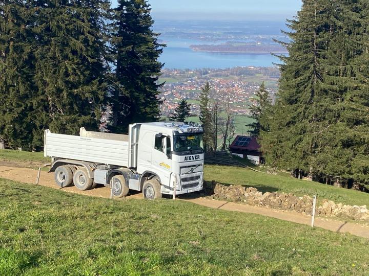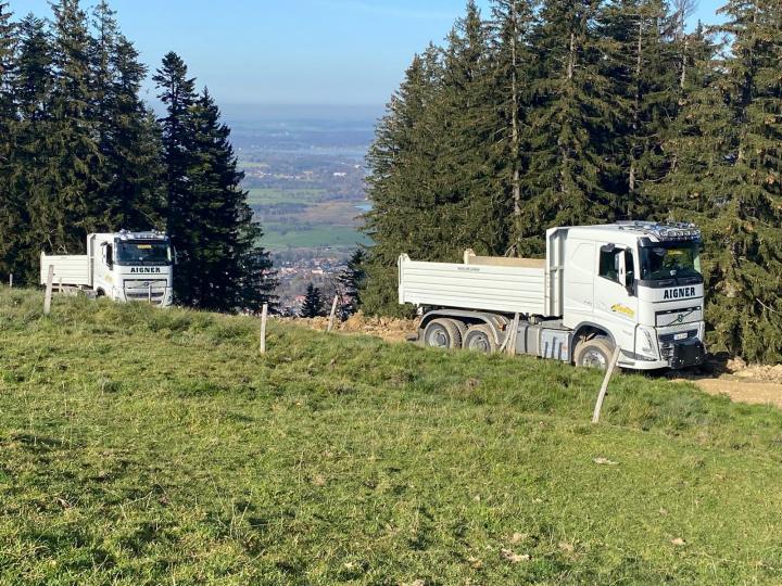 Auch unsere Lkw sind derzeit für einen Almwegebau am Berg unterwegs