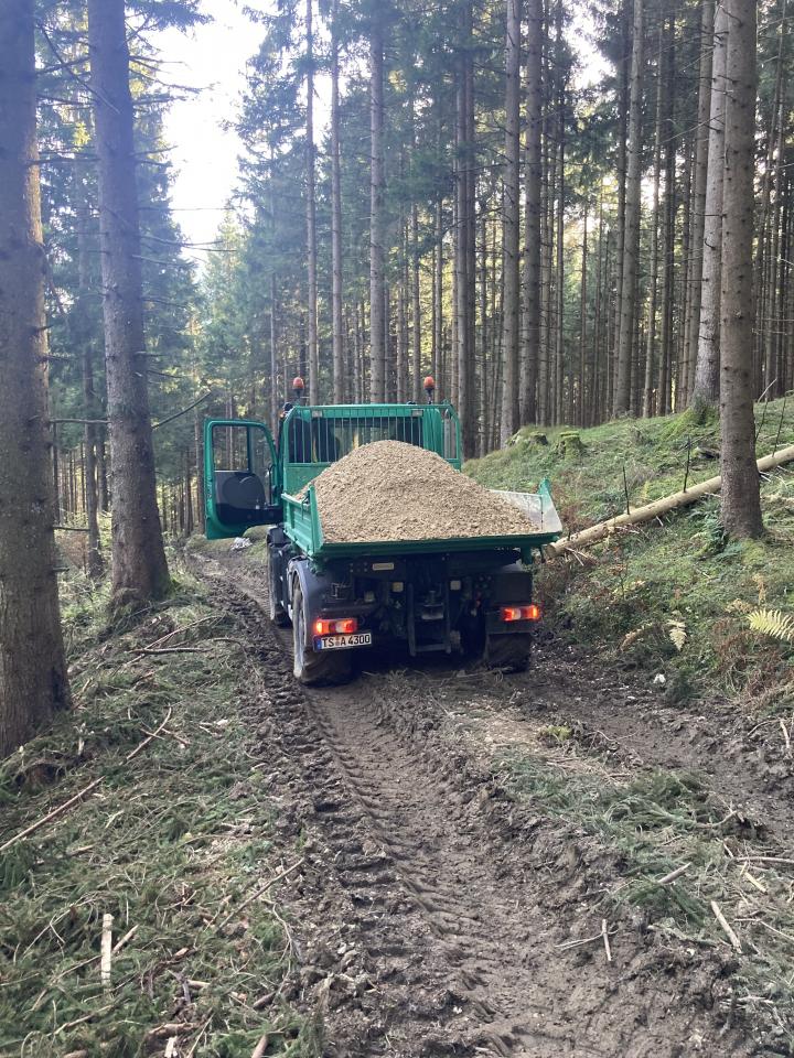 Kiestransport zur Instandsetzung von Rückewegen