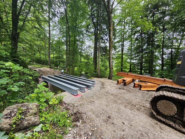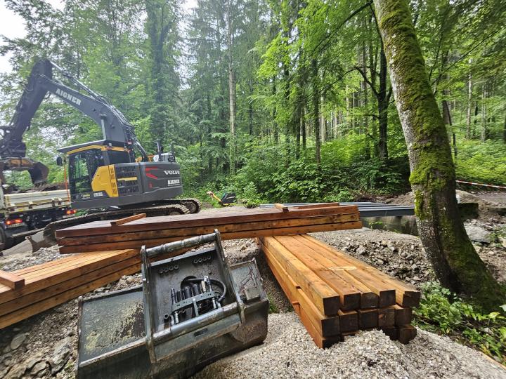 Materialtransport zum Bau der Wildbachfurt