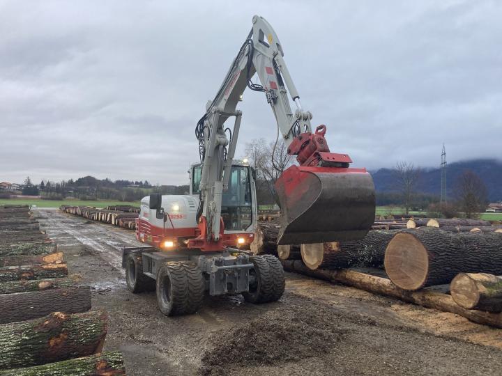 Abziehen der Besucherwege am Holzlagerplatz in Übersee