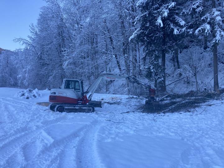 Waldwege Freischneiden mit unserem Auslegemäher mit Kreissäge